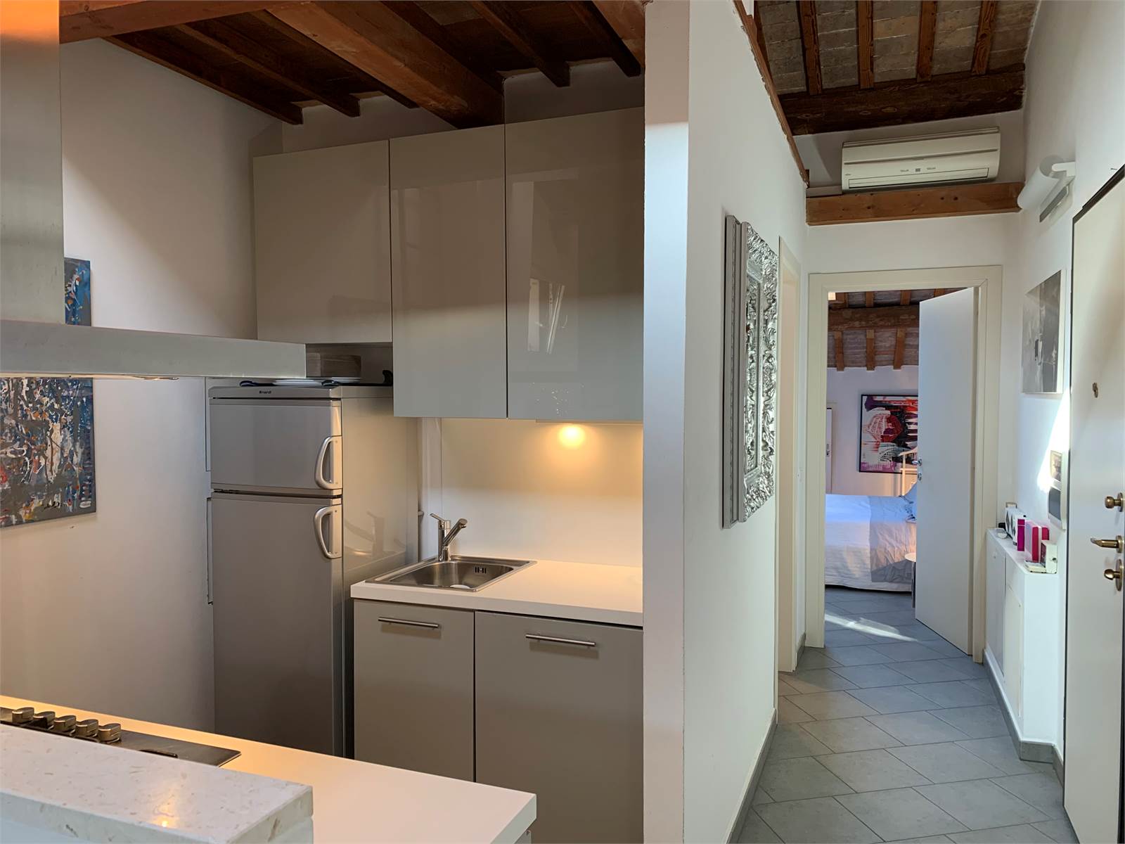 Si tratta di un luminoso bilocale mansardato, al secondo ed ultimo piano completamente ristrutturato e arredato a nuovo. Ingresso su disimpegno, soggiorno con angolo cottura a vista, ampio bagno finestrato con box doccia, camera da letto matrimoniale con spaziosa armadiatura e affaccio a corte interna. Piccolo soppalco ideale come ripostiglio. Riscaldamento a pavimento. Aria condizionata. Velux elettrici. Basse spese di gestione. Travi a vista. Posto bici.