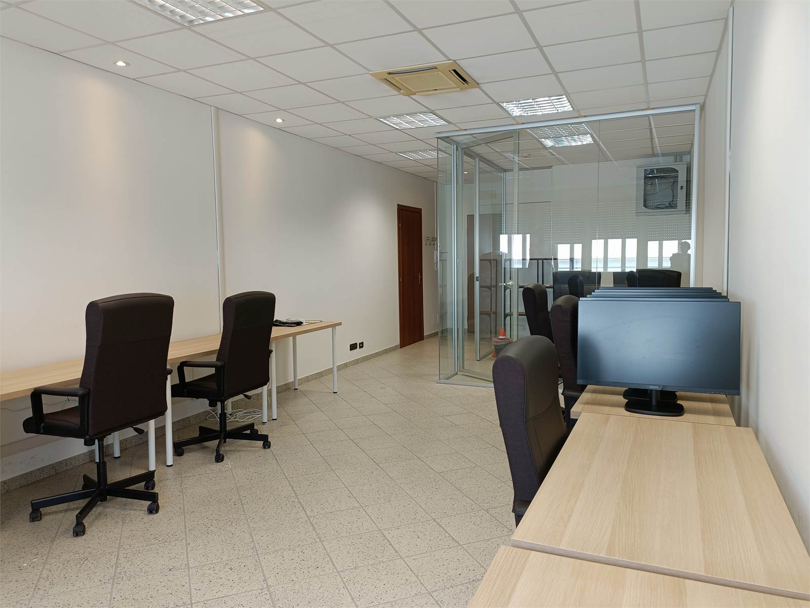In via del Commercio in curata struttura, si affitta al piano primo, locale uso ufficio di 42 mq. . Angolo riservato in pannelli di vetro e spazio aperto molto luminoso. Bagno privato. Impianti certificati.