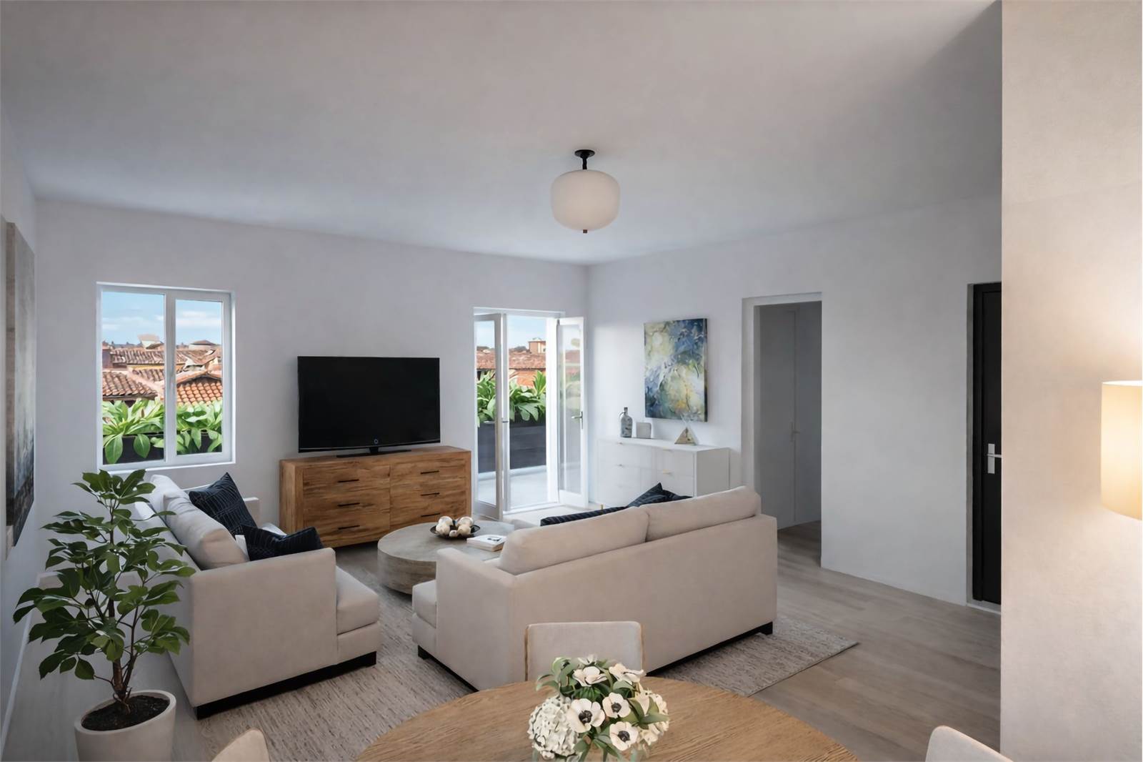 POSSIBILITA' di realizzare la terza camera da letto e fare l'angolo cottura in soggiorno a vista. Terrazzo abitabile esclusivo. Finiture di pregio. Utenze autonome con impiantistica all'avanguardia: VMC (ventilazione meccanica), riscaldamento e raffrescamento a soffitto radiante, pannelli solari, infissi in triplo vetro legno/alluminio, parquet. Posto bici. Possibilità di acquistare all'interno del fabbricato (PT) un box esclusivo o un posto auto in garage. Info presso i ns uffici.