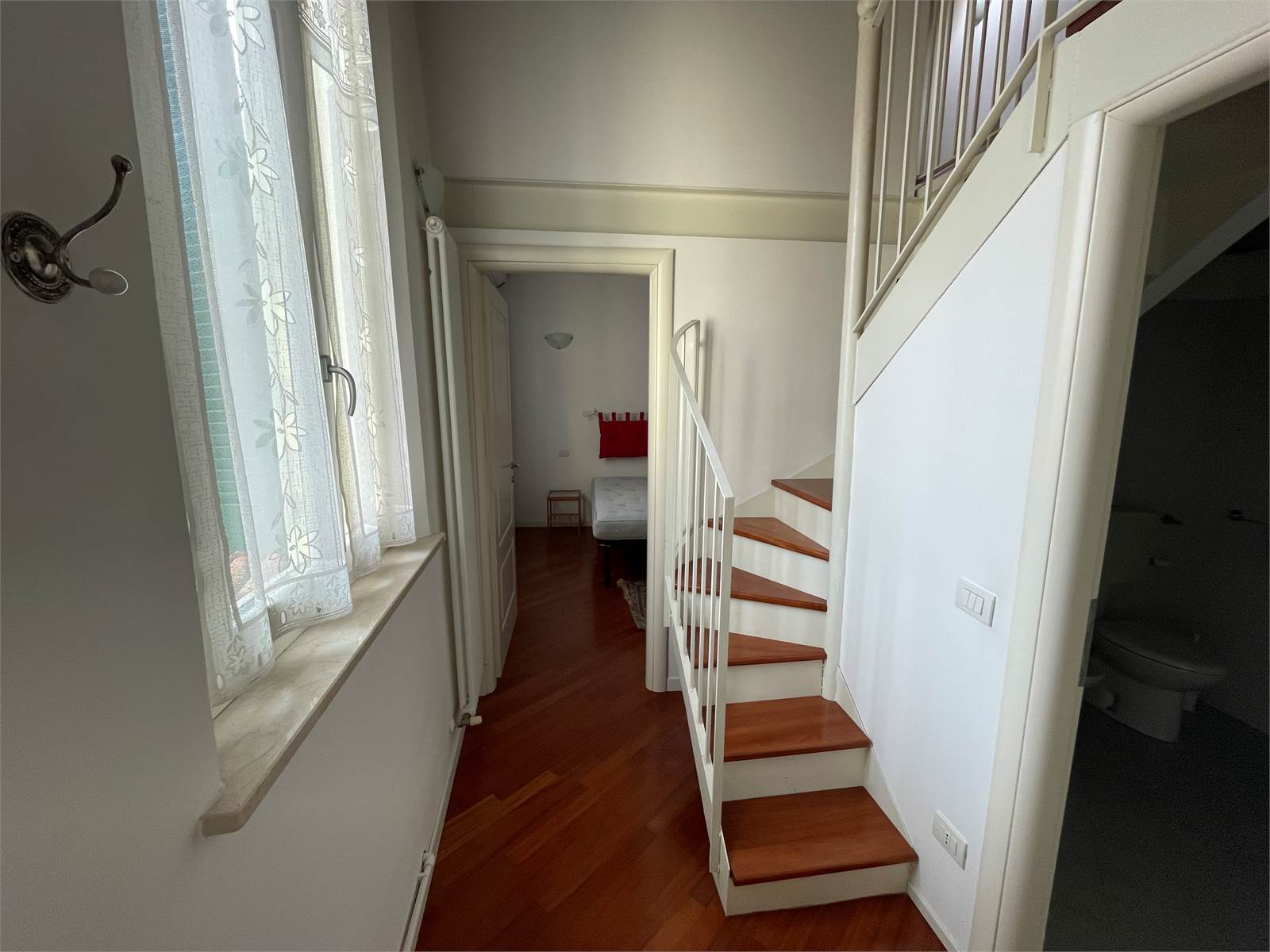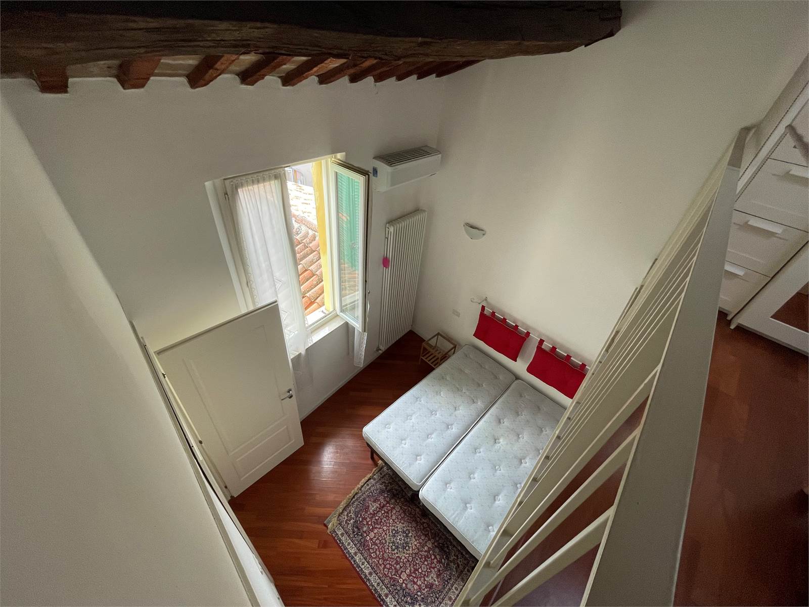 Ci troviamo nella centralissima zona del vecchio Ghetto. In palazzina di poche unità ristrutturata ottimo e luminoso appartamento bilocale al secondo piano senza ascensore affacciato sull’interno,così composto: ingresso su soggiorno/cucina , disimpegno,camera matrimoniale ,bagno con box doccia. Zona soppalcata ideale come eventuale camera singola/studio o zona relax.Ad una sola rampa di scale luminoso terrazzo condominiale. Di proprietà abbiamo anche un ripostiglio /zona studio riscaldata ed una cantina al piano terra. Parquet.Climatizzato,infissi termopan, porta blindata ,posto bici. Utenze autonome.Bassissime spese condominiali.Arredato pronto per essere abitato, RTI già disponibile. Ideale da investimento vista la zona centralissima e comoda alle diverse facoltà universitarie o per attività turistico-ricettiva.Libero.